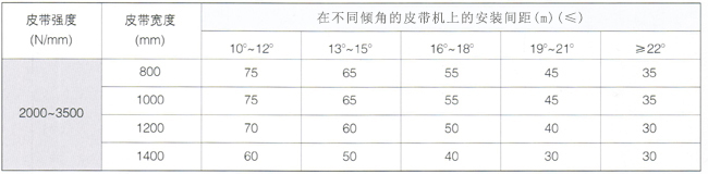 上斷帶抓捕器的安裝間距(m-(參考值)